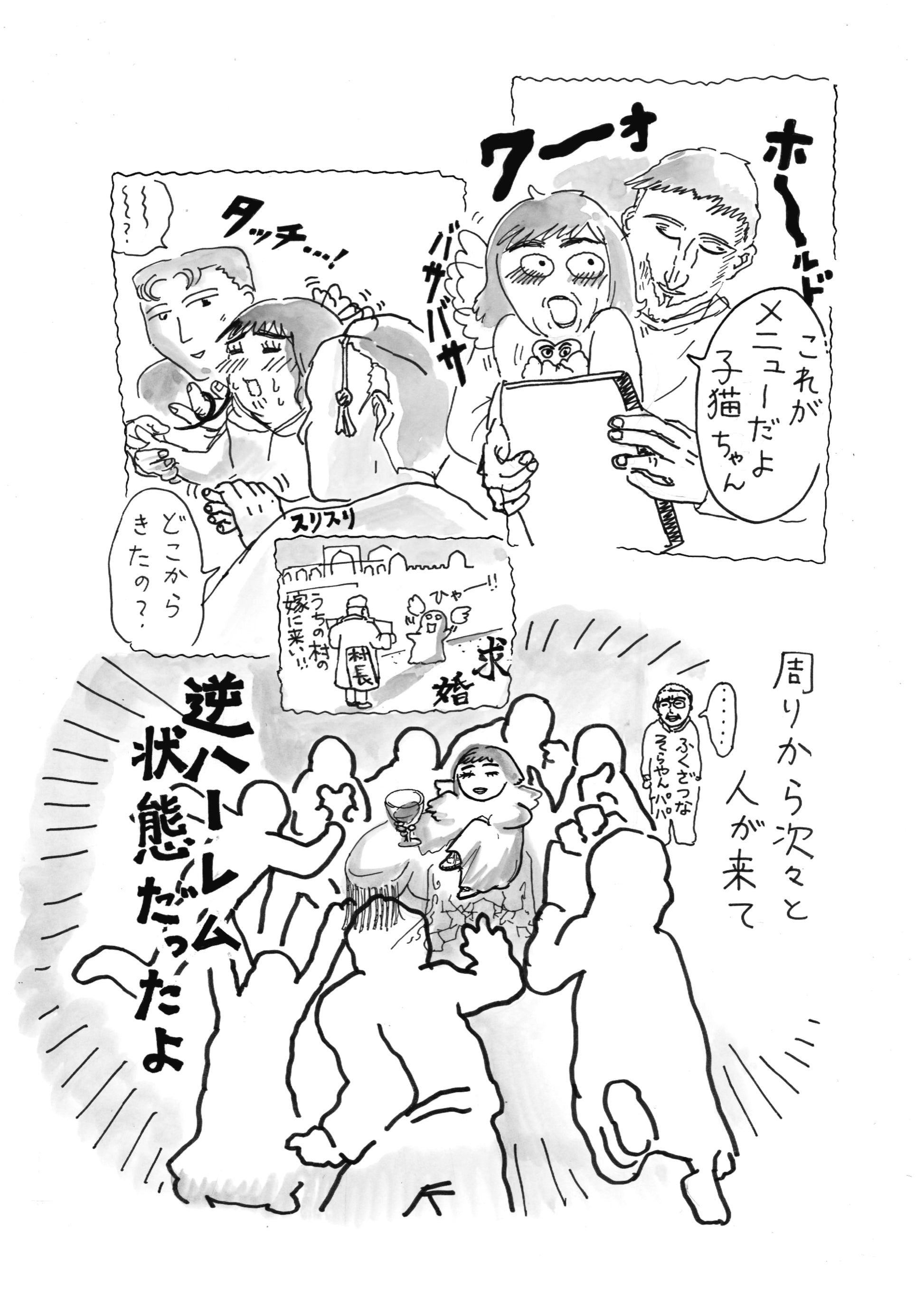 彫刻家としての目指しによる観察と、ナイーブな線や構成が交わる作品世界には、かわいらしさと不思議なリアリティが同居し、読む者をふとした異世界へと連れ出す。紙と鉛筆を携え、今日もどこかで取材中。